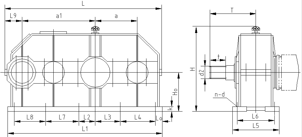 H型減速器外形尺寸,見圖14、表16:
